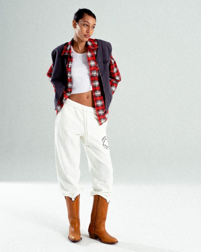 Hand screen printed on front left & right leg, back left.