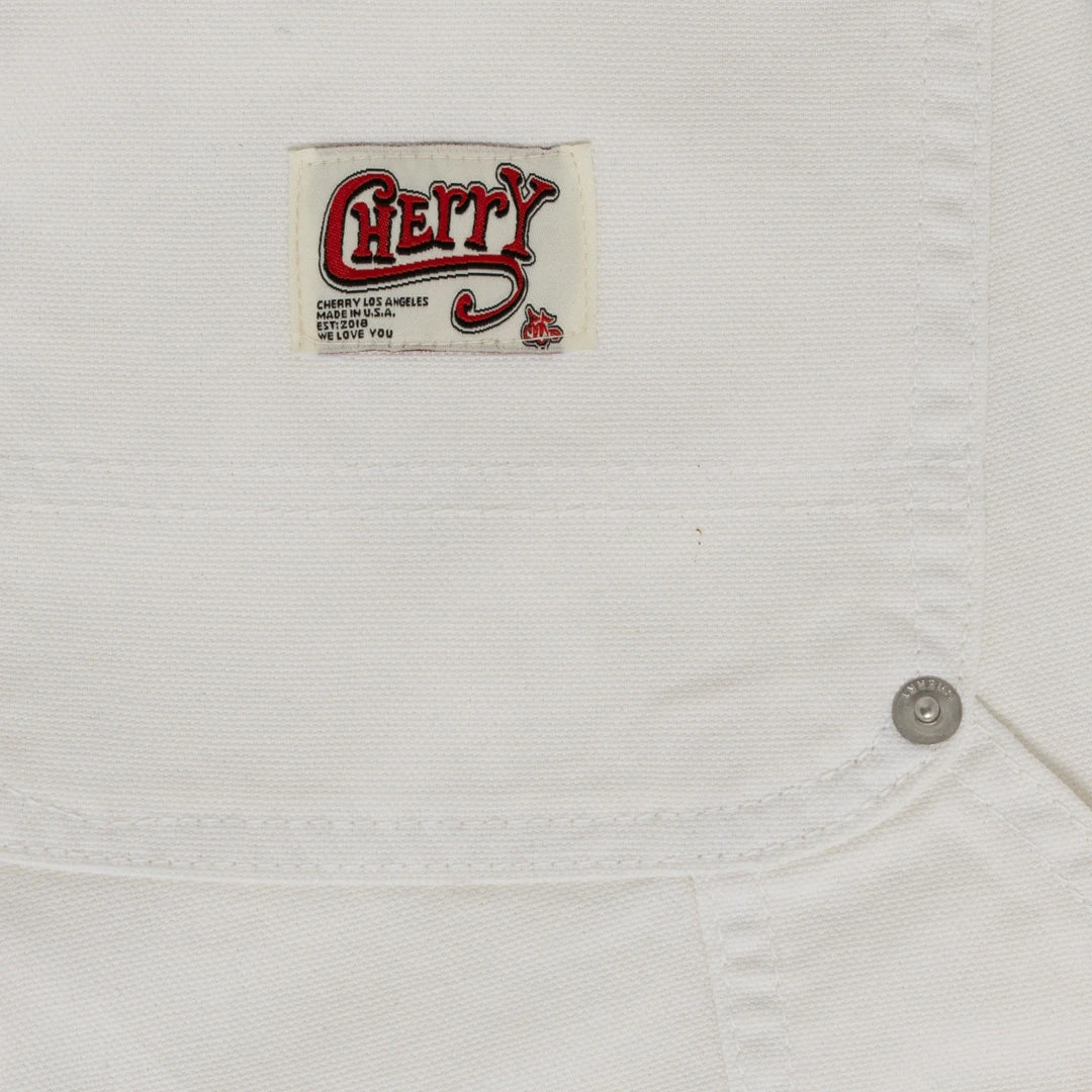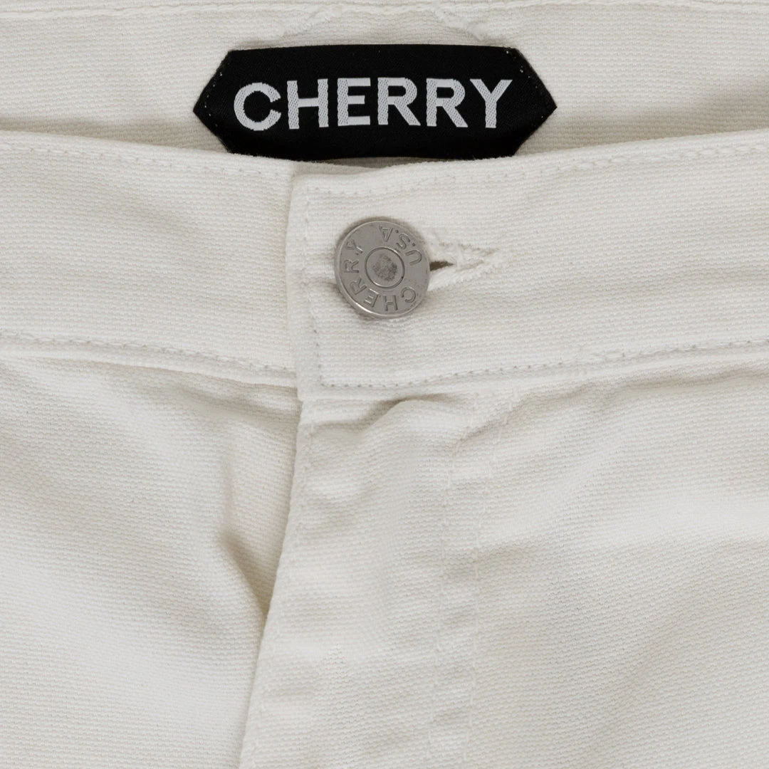 Garment Dyed and rinsed for soft hand feel. Regular Fit. Zip-fly. Triple chain stitched flat felled seams. Side pockets with additional coin pocket. Hammer loop detail and leg utility pockets. Cherry woven label on back pocket.