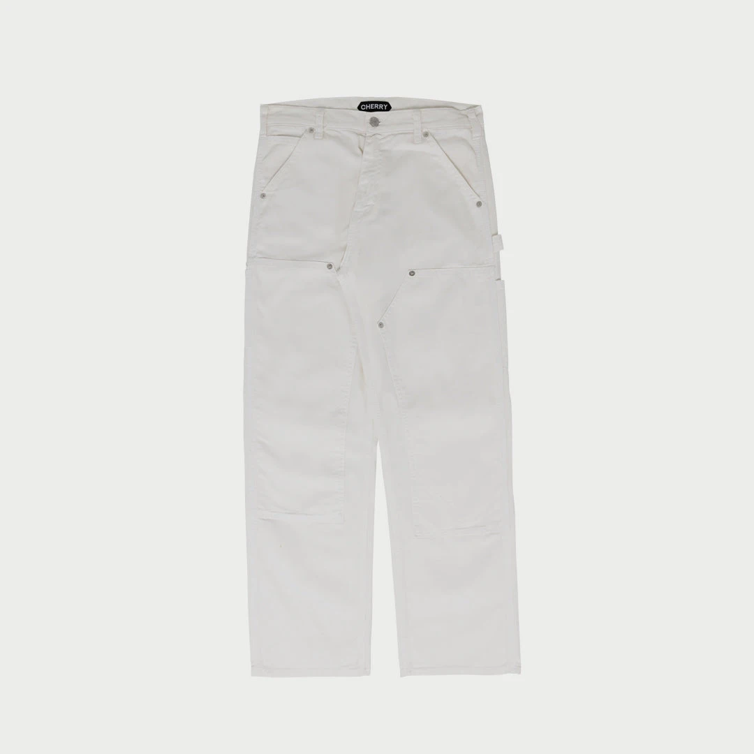 100% Cotton Canvas Painter Pants. Straight leg fit with double knee detailing & custom rivets throughout.