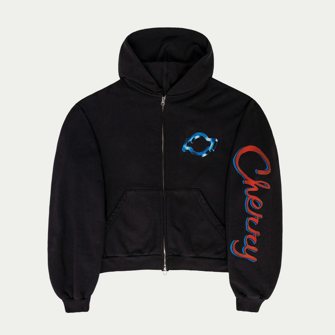 Hand screen printed on front and back and sleeves with plastisol ink for long lasting print. Double sided zipper for extra comfort.