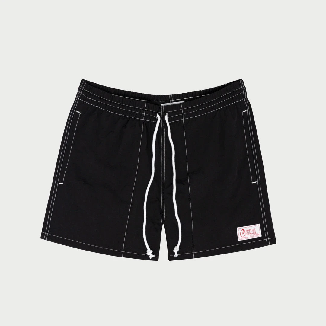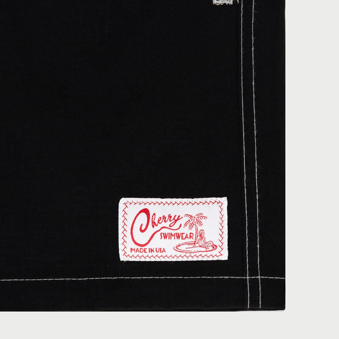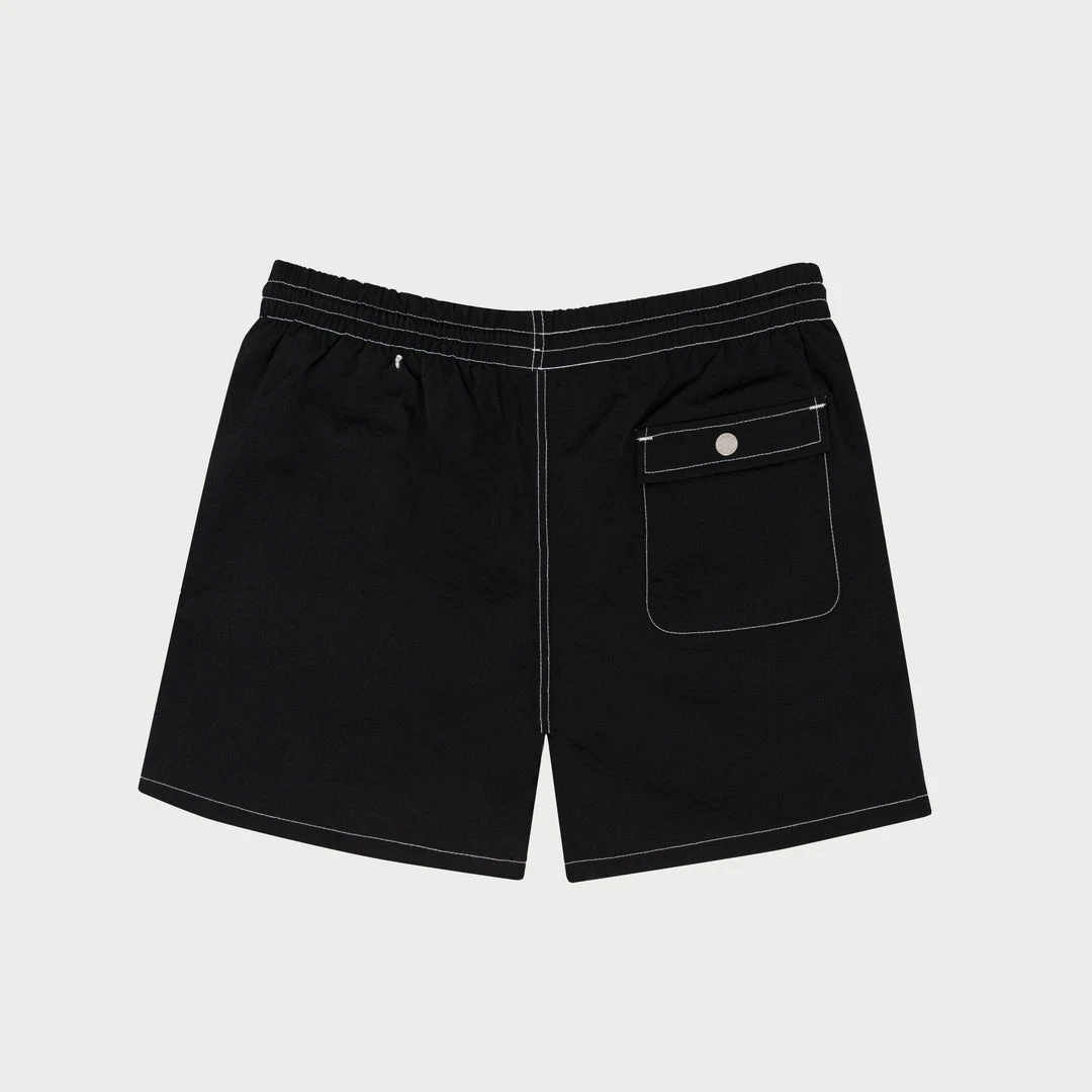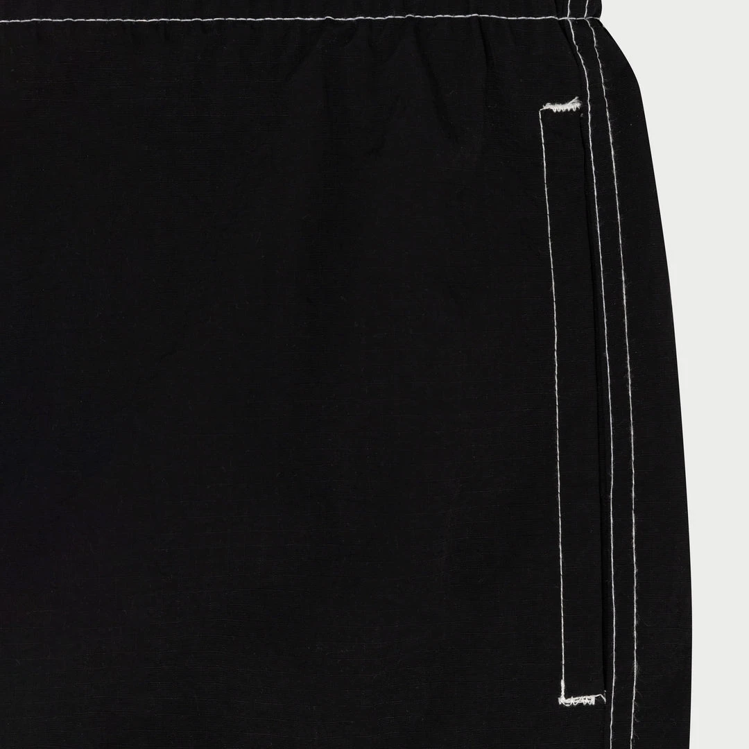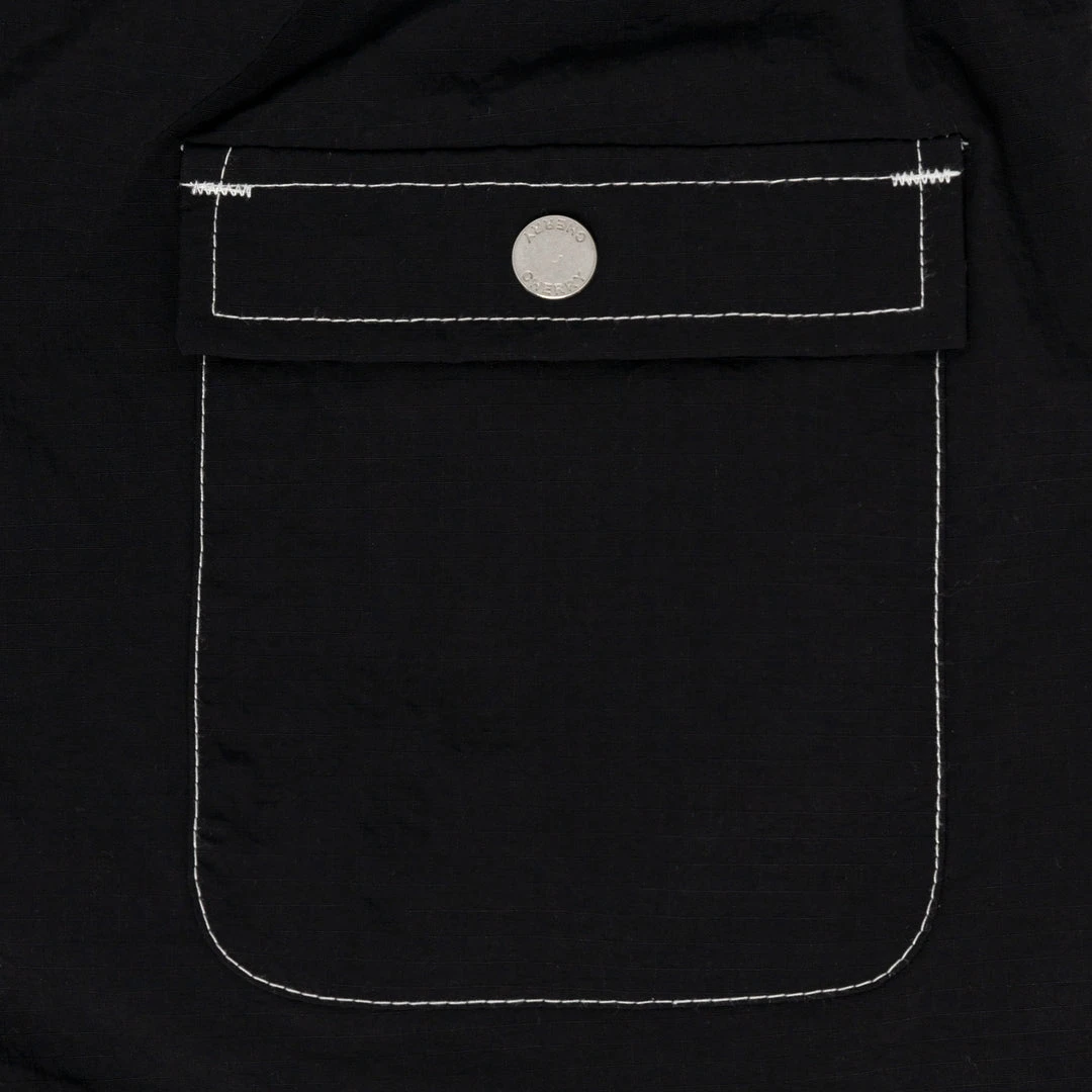 Water proof ripstop with sport mesh lining. Hidden eyelets for water drainage. Custom rubber drawstring ends. Contrast stitching throughout.