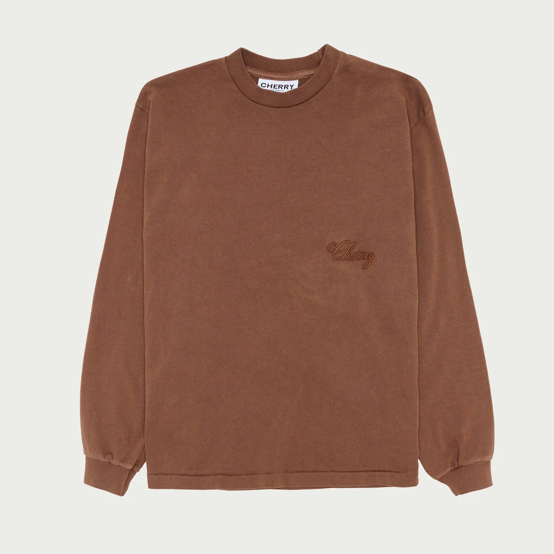 10oz USA 100% Cotton 2 ply. Long Sleeve Heavyweight T-Shirt. Garment dyed then washed for soft hand-feel. Embroidered on left ribcage.